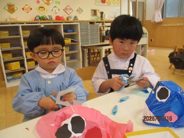 「これがほしい!」「あれも作りたい!」と劇ごっこに必要なものを少しずつみんなで