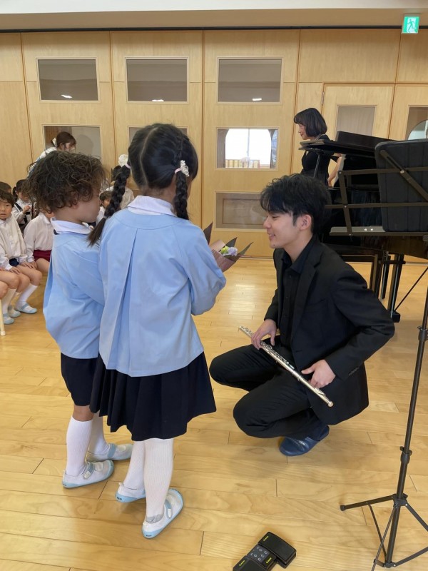 フルートの優しい音色と、ピアノのきれいな音色に耳をしっかり傾けて静かに最後まで参加できました。
