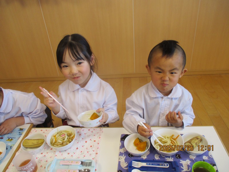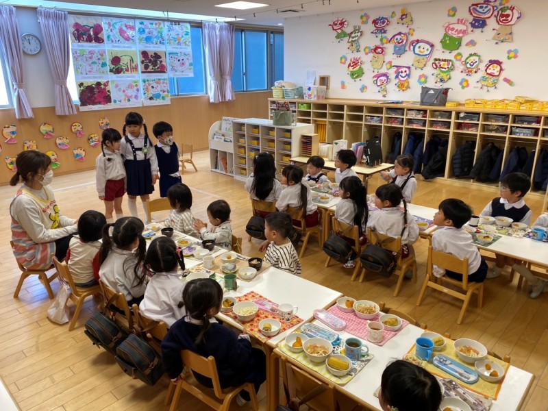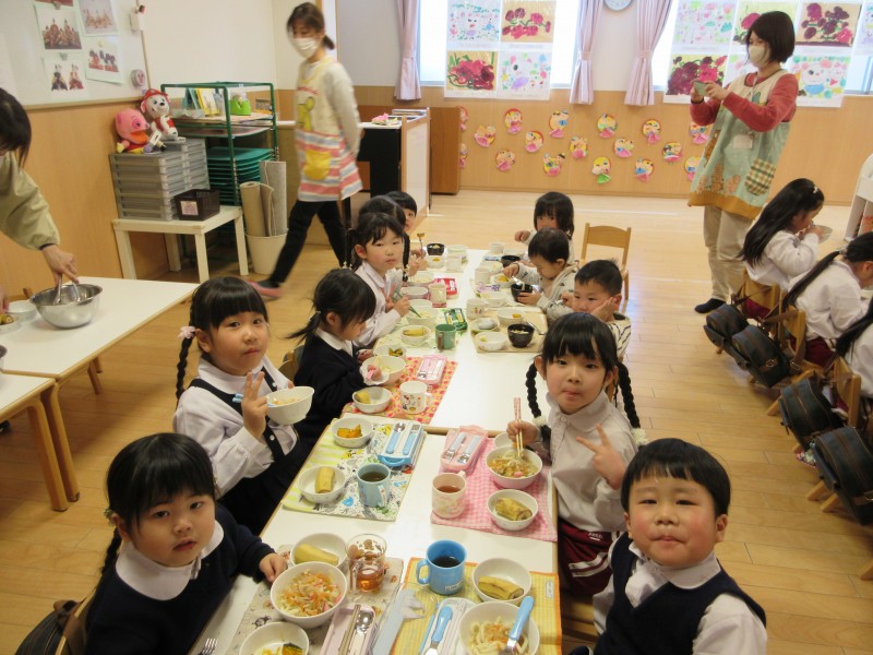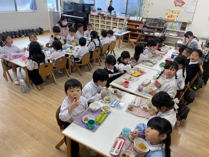 縦割り活動を重ねるごとに、仲が深まり、学年の違う友達と机を囲んで食事を楽しむ姿がありました♪