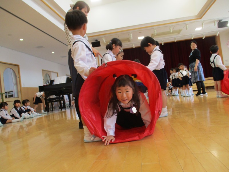 子どもの日の由来のお話を聞いたり、歌を歌ったりトンネルくぐりをしたり、楽しくお祝いをすることが出来ました!!