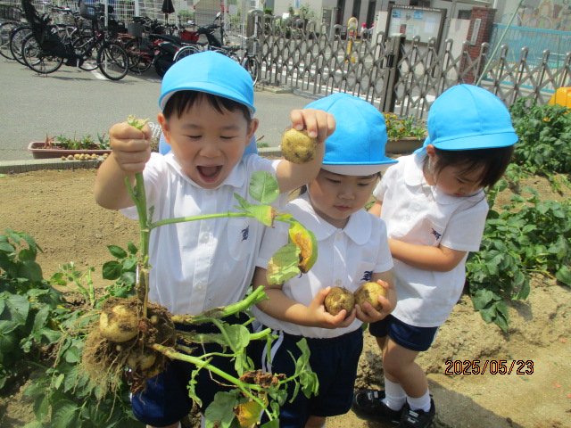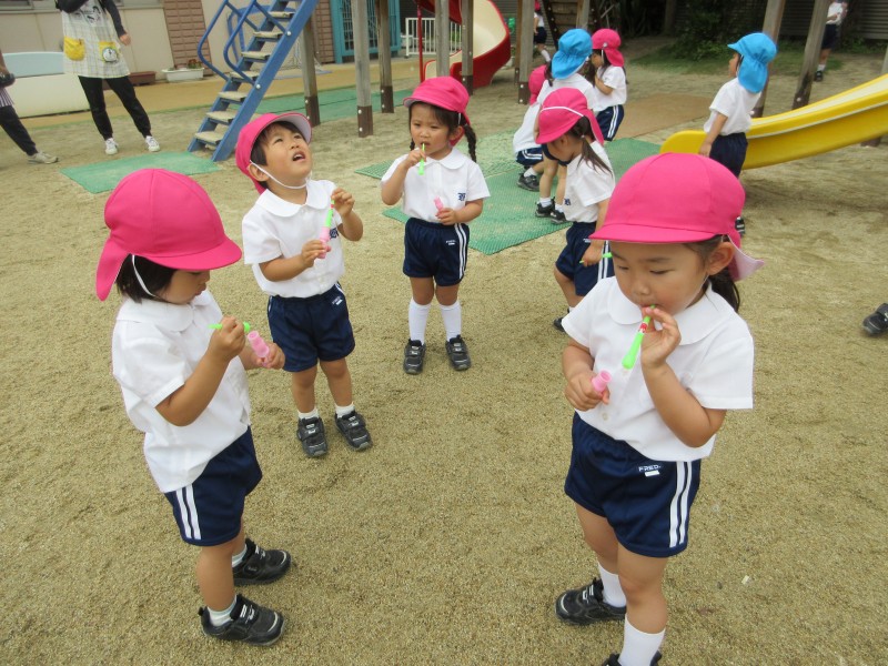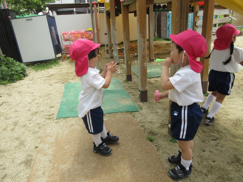 今週は、リトミック、じゃがいも堀り、シャボン玉など行いました。