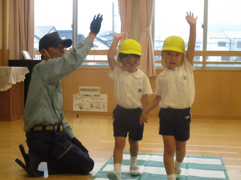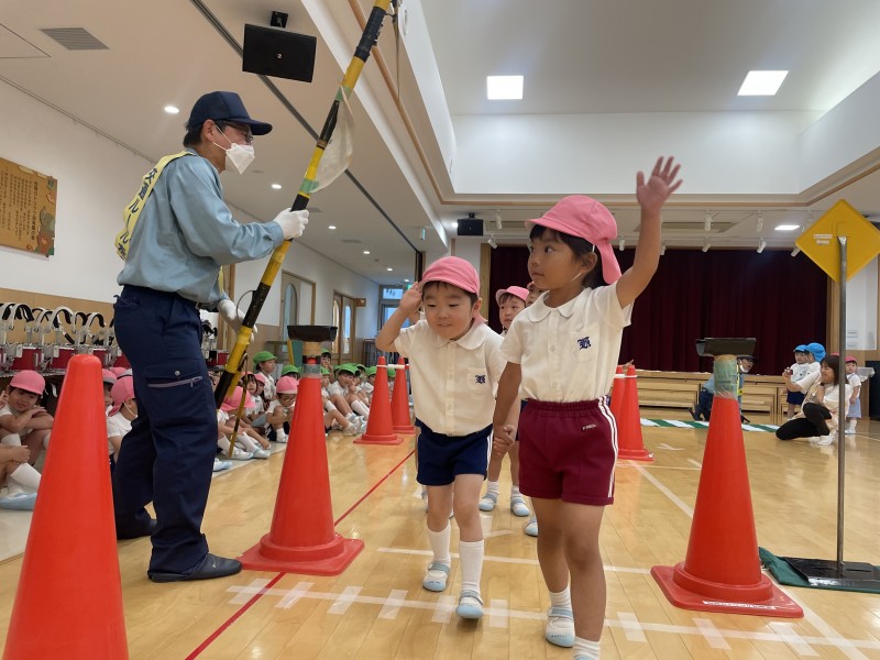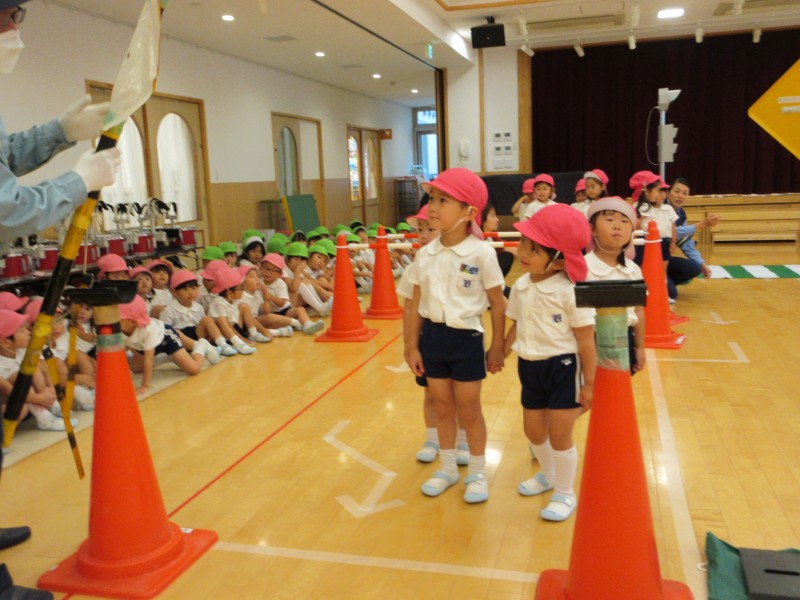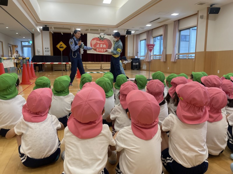 警察官の方と市の方が園に来て下さり、交通ルールや交通マナーについて教えていただきました。