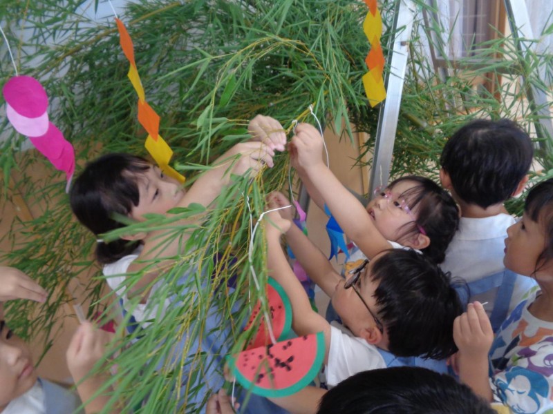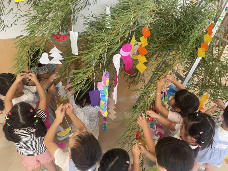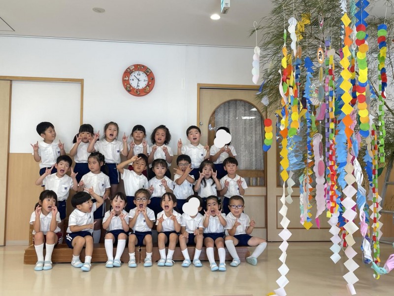 幼稚園ホールで七夕踊りをしました。スペシャルゲストでひょこたんと歌のお姉さんが来てくださり、みんな大喜びで、ひょこたん踊りを一緒に楽しく踊りました🦊🎋