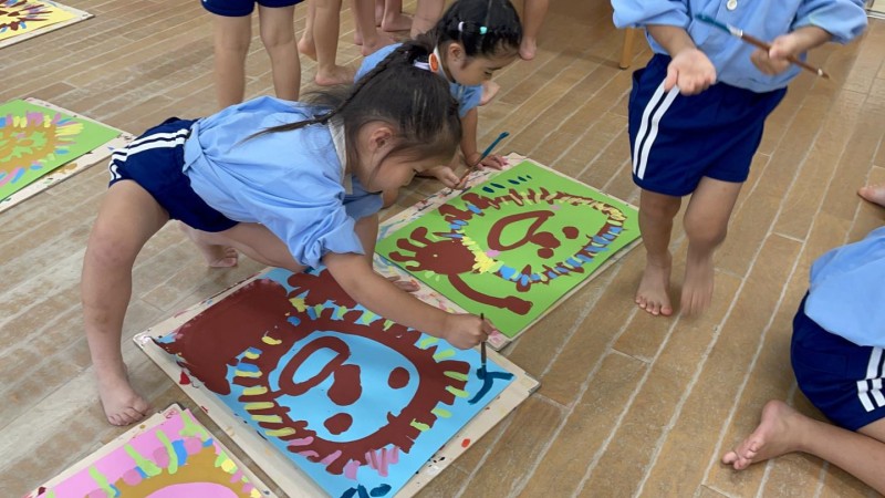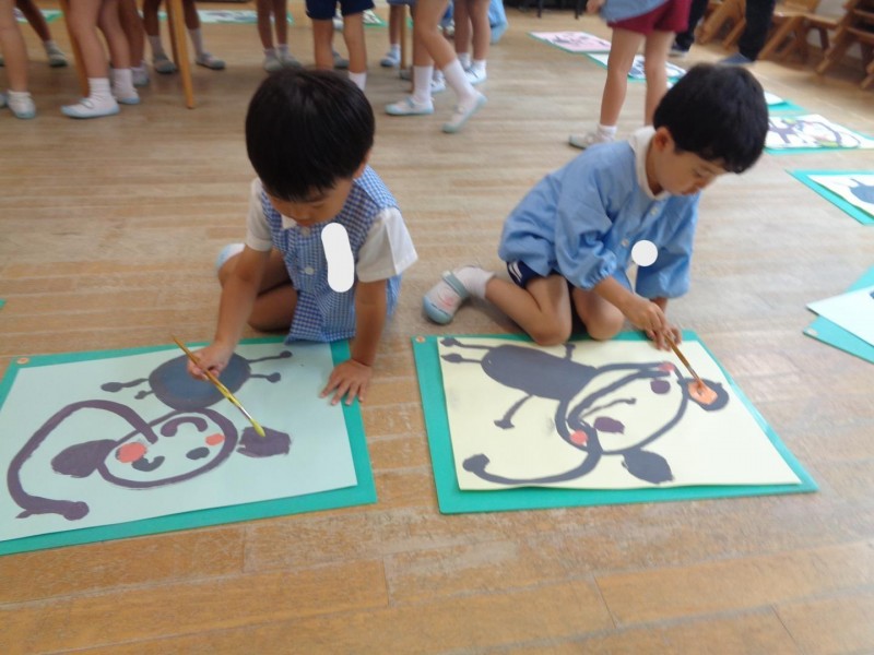 絵画「ぞう・らいおん」を描いたり、少しの涼しい時間帯に戸外活動したり、保育室では自分で選んで好きな活動に取り組みました!