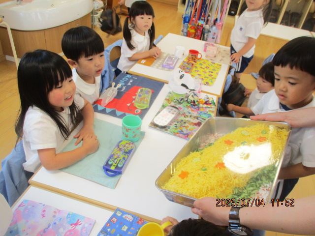 本日幼稚園では七夕祭りを行いました。