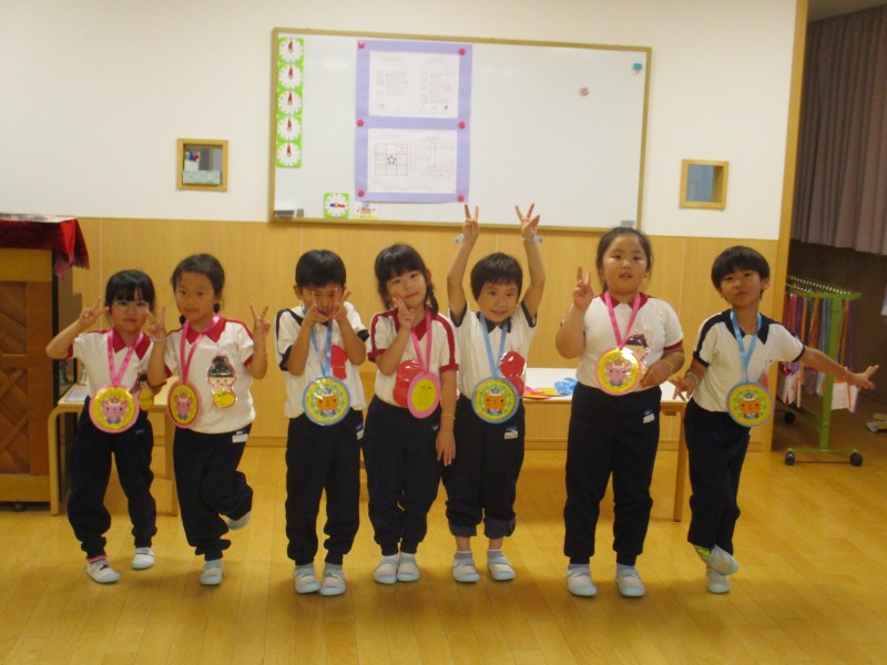 ミッションゲームは、ビンゴ大会をしました。チームで何の数字にするか話し合い、ビンゴになると景品がもらえます。子どもたちも先生たちも、ビンゴになると大喜びでした♪
