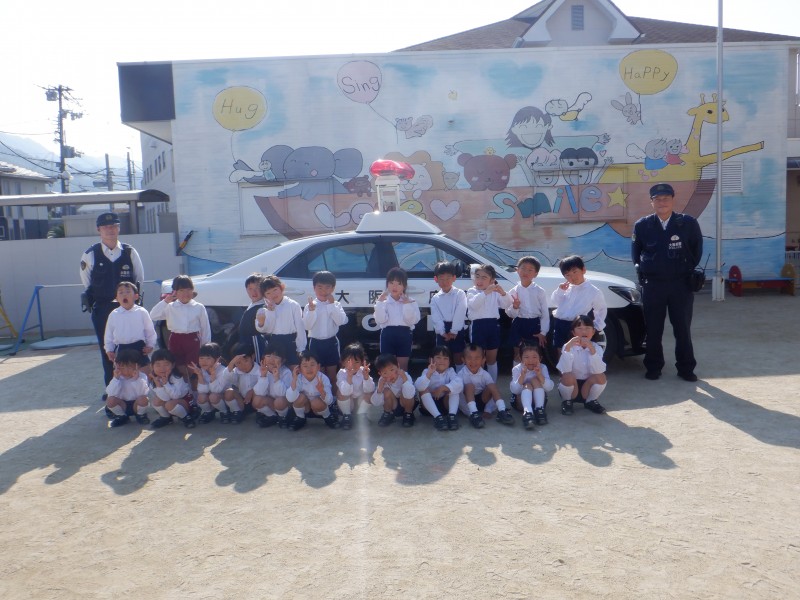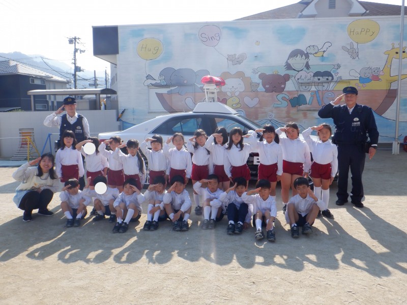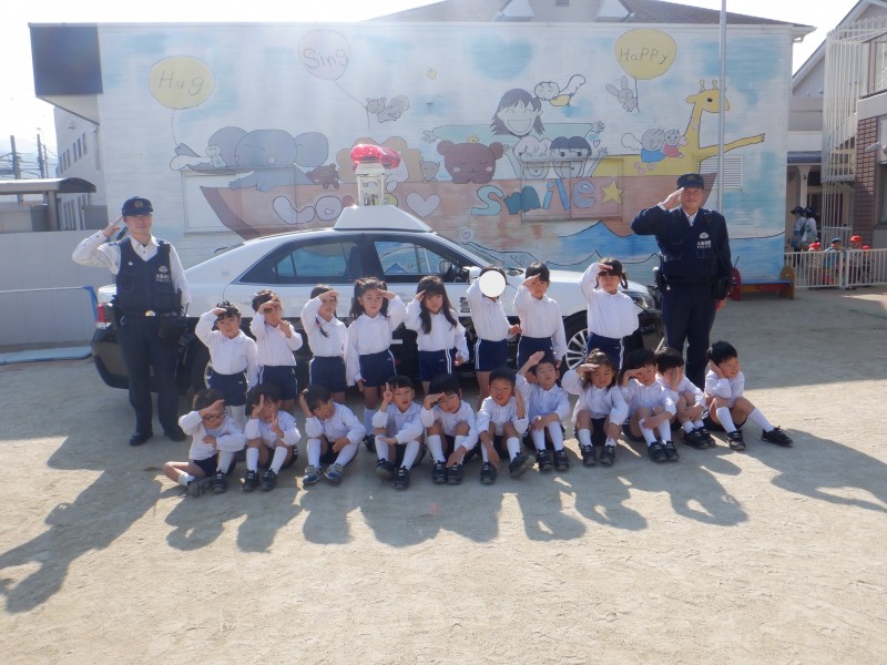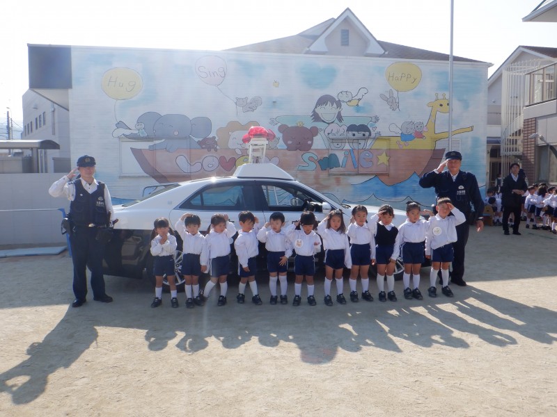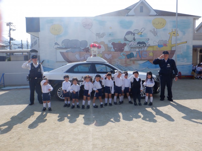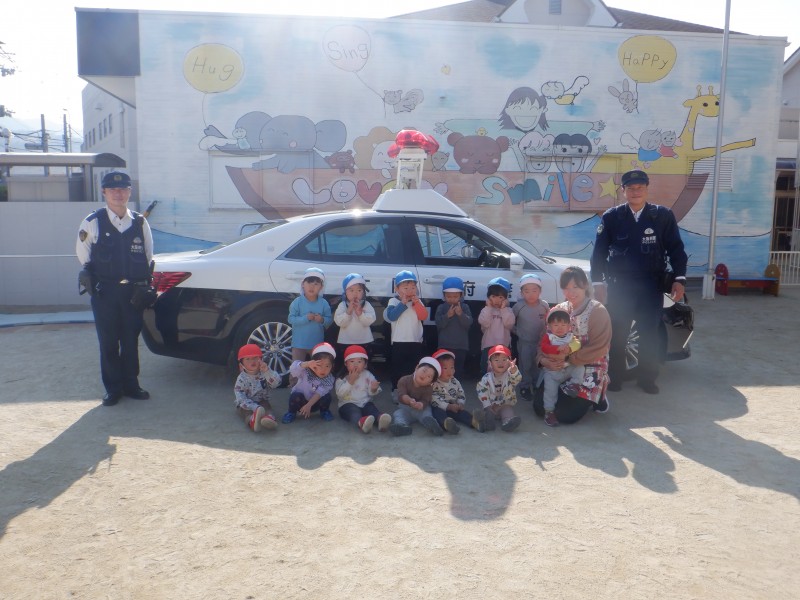 最後はみんなでサイレンのなるパトカーに「ばいばーい!」とお別れの挨拶をしました(⌒∇⌒)