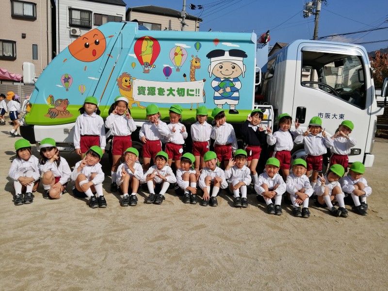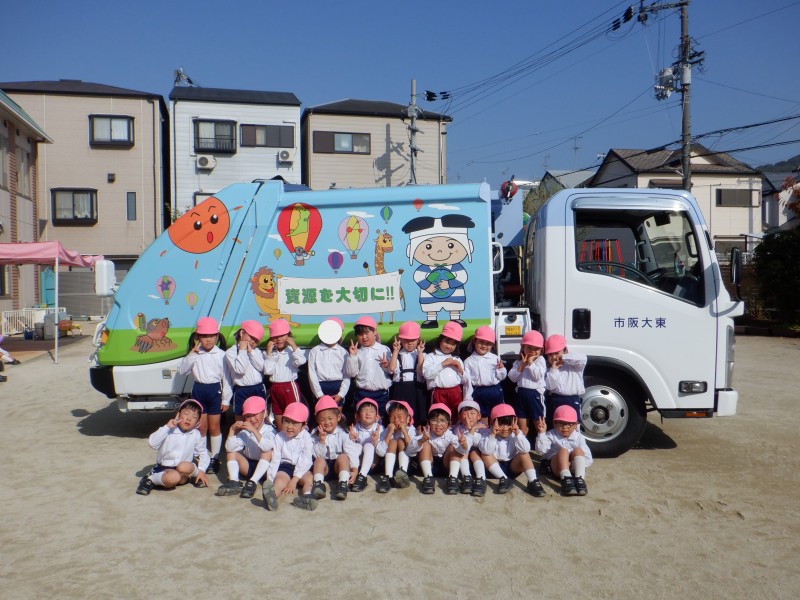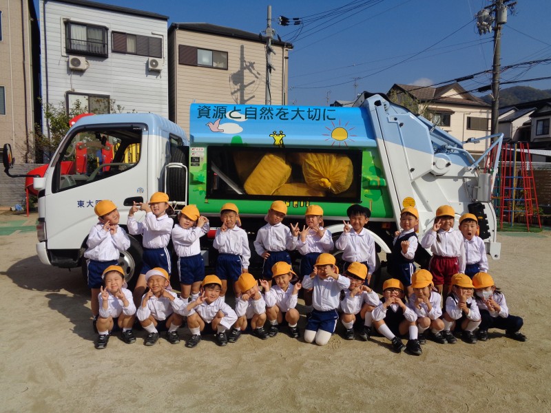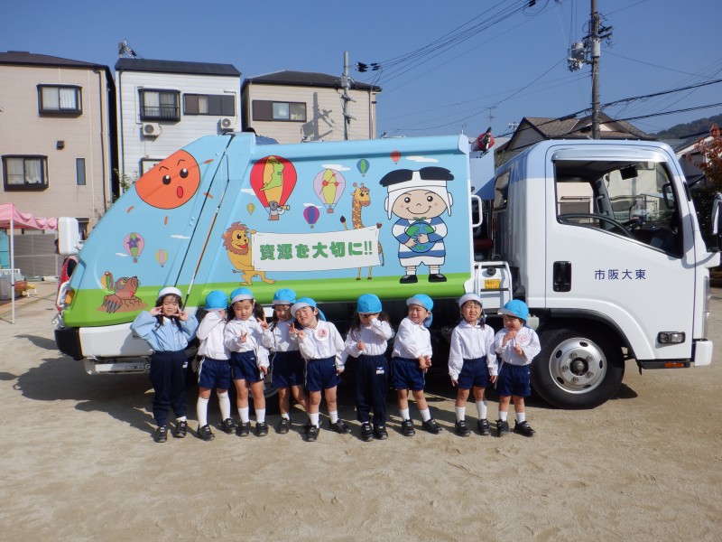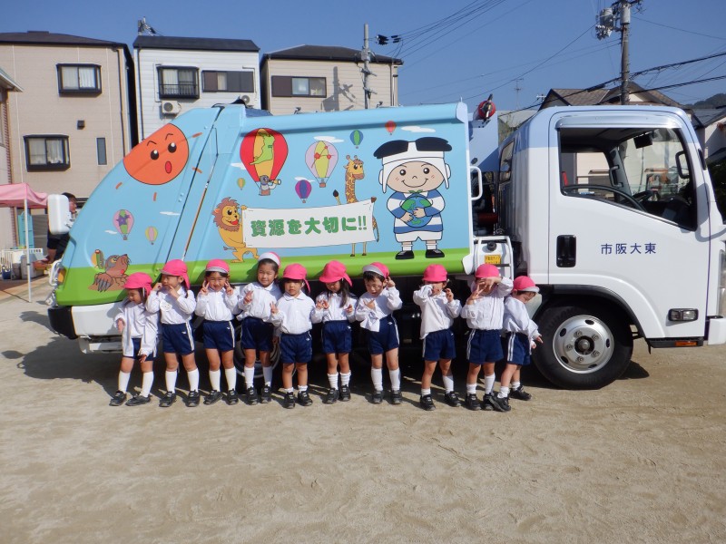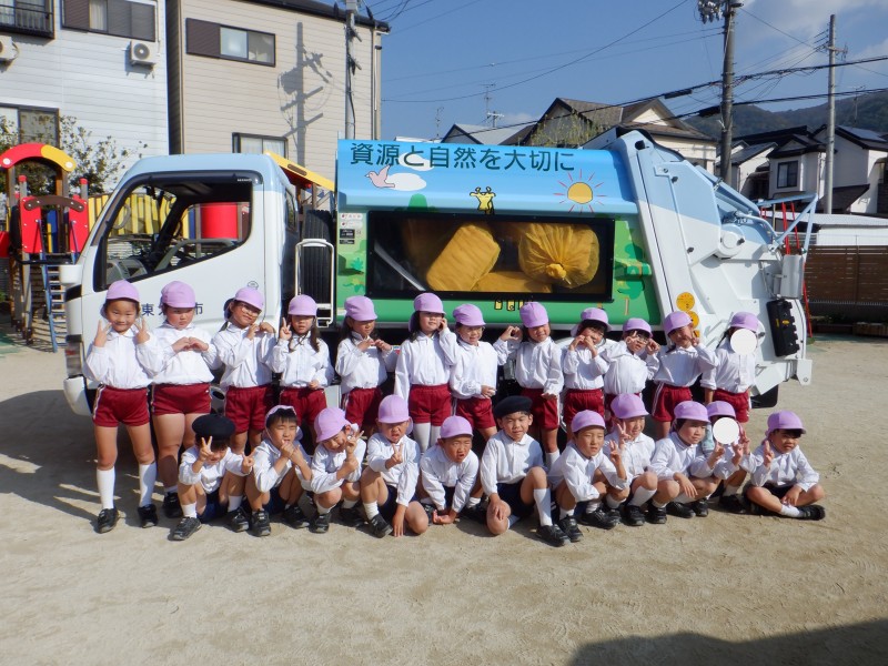 幼稚園にスケルトンパッカー車が来てくれました。