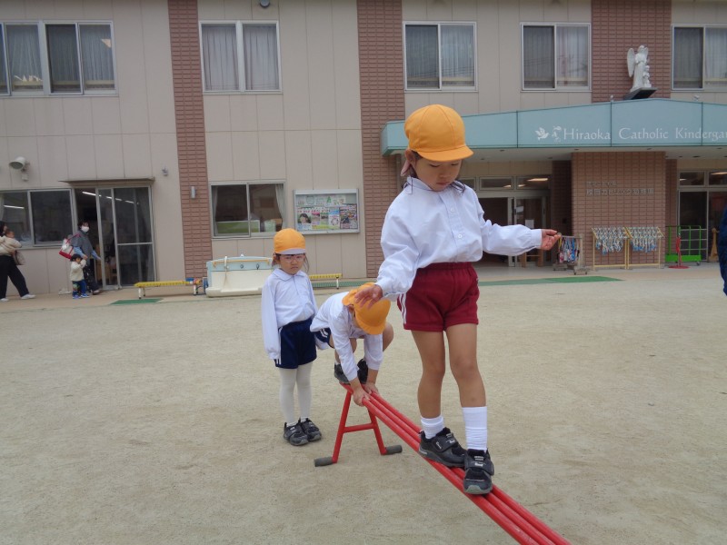 平均台や雲梯では、バランスをとりながら慎重に進んだり、「もう1回!」と何度も挑戦したりと元気いっぱい楽しんでいます。