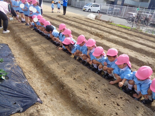 「大きくなーれ」と声をかけながら丁寧に植える姿がとても微笑ましく、収穫の日を楽しみにしている様子でした。これからも、自然や体を使った活動を通して、たくさんの経験をしていきたいと思います。