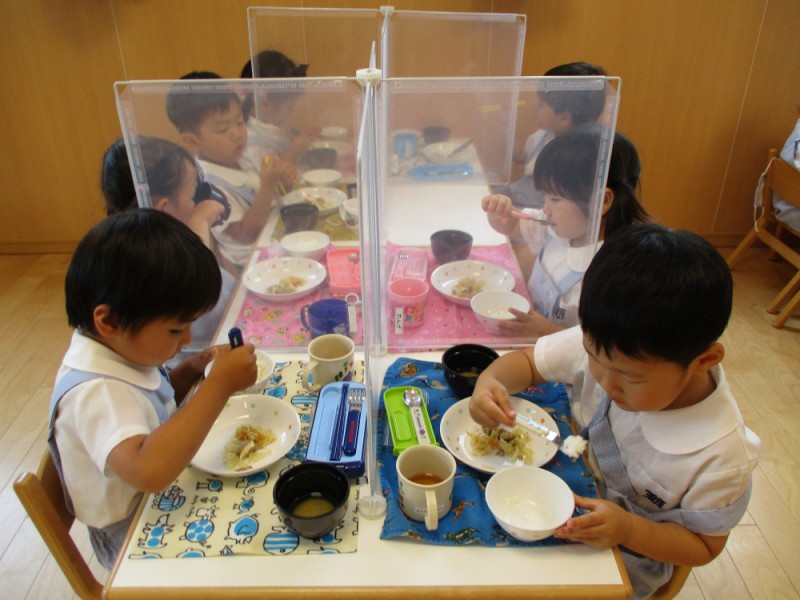 幼稚園の給食メニューにも慣れてきた子どもたち!