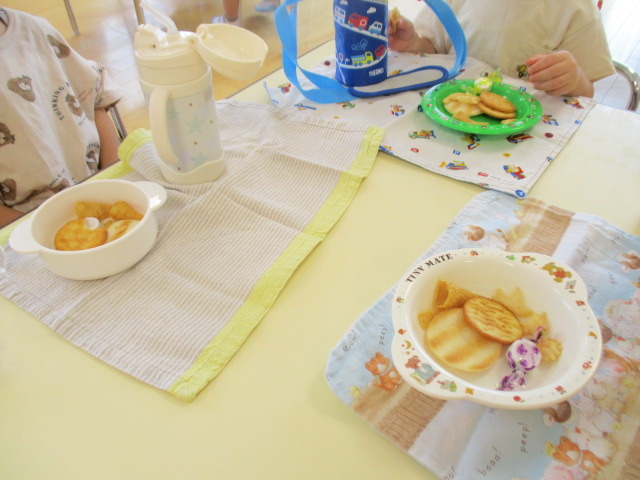 大好きな戸外活動のあとは、待ちにまった≪おやつタイム≫です。