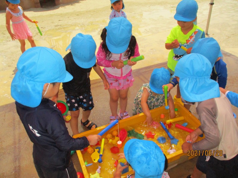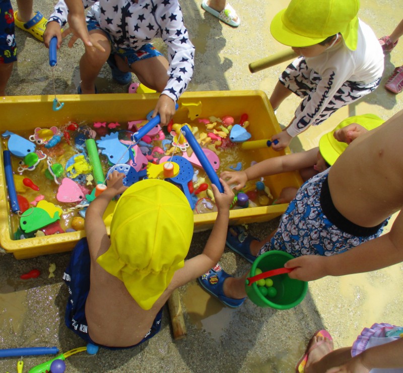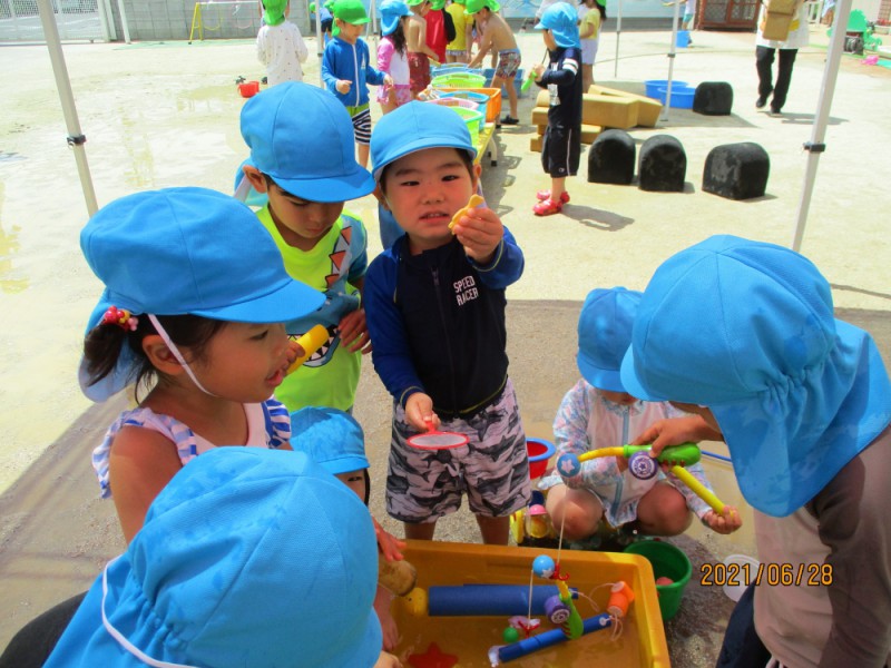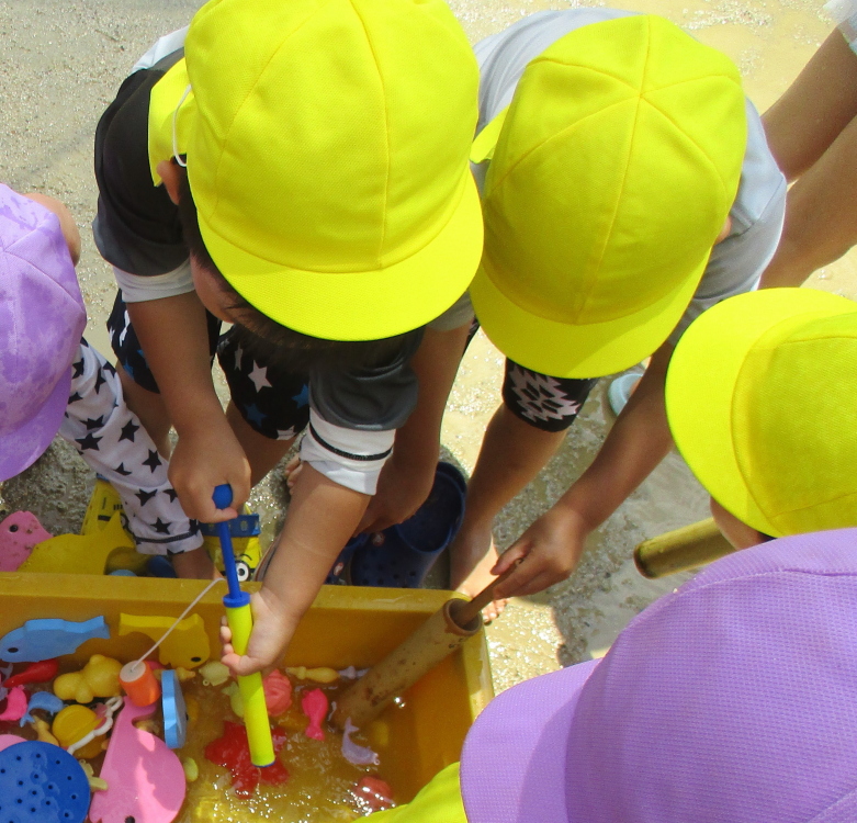 金魚すくい、魚釣り、水てっぽうなど様々な道具を使って楽しく遊んでいます☆