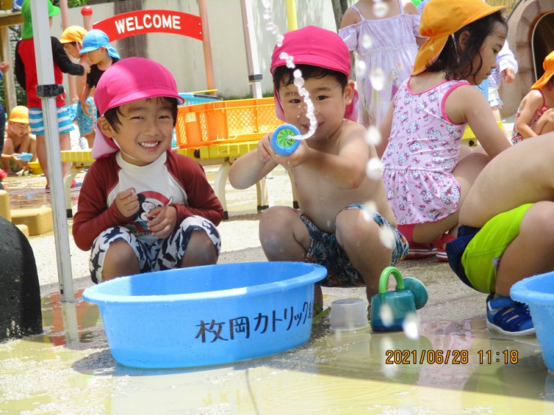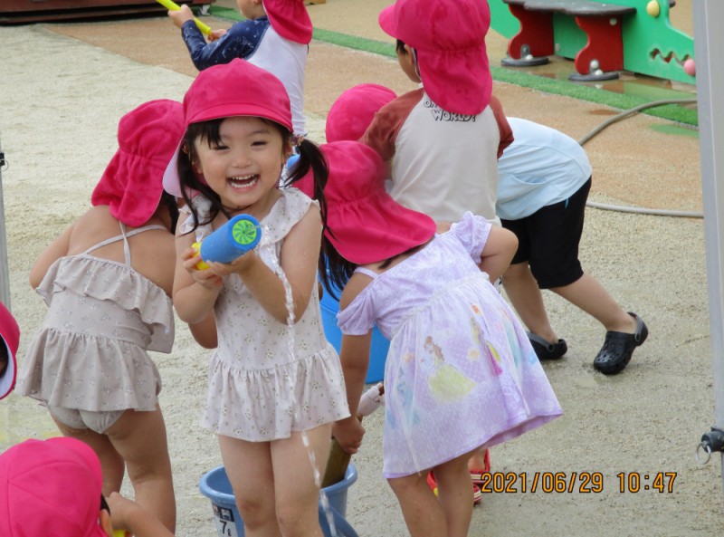 幼稚園では水遊びが始まりました♪