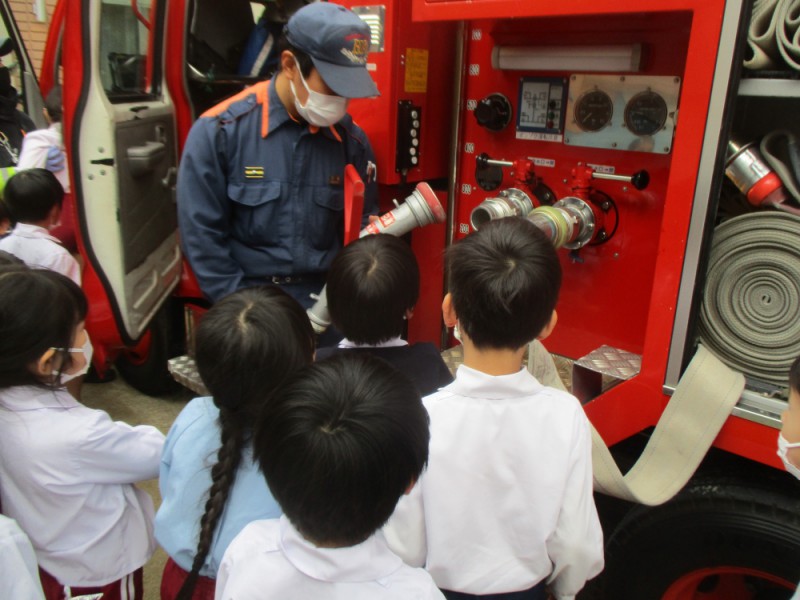 消防車が幼稚園にきたよ
