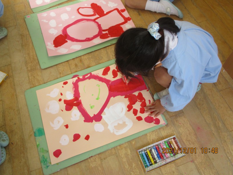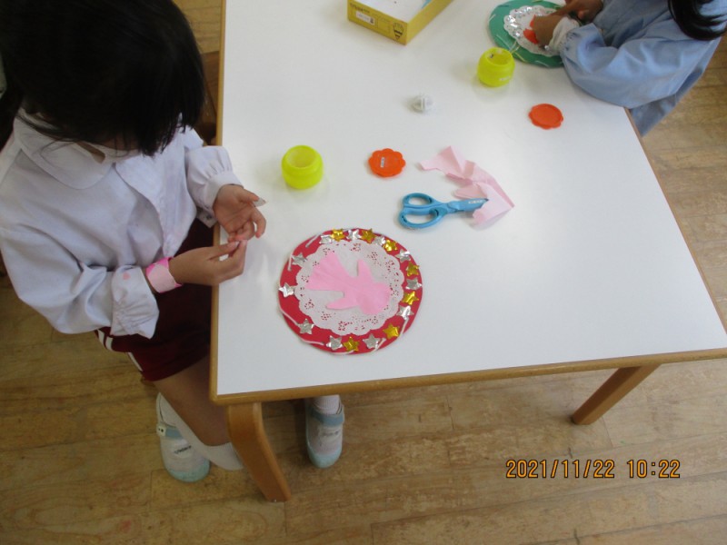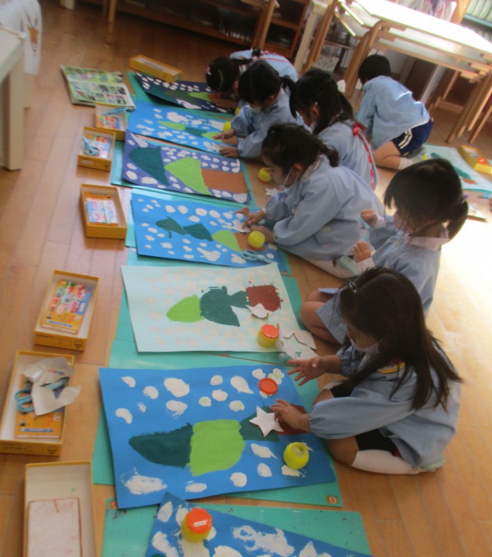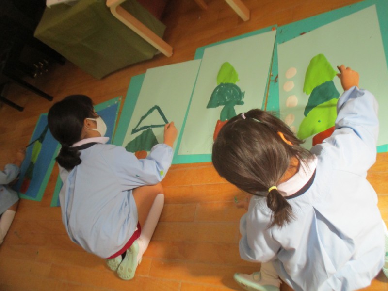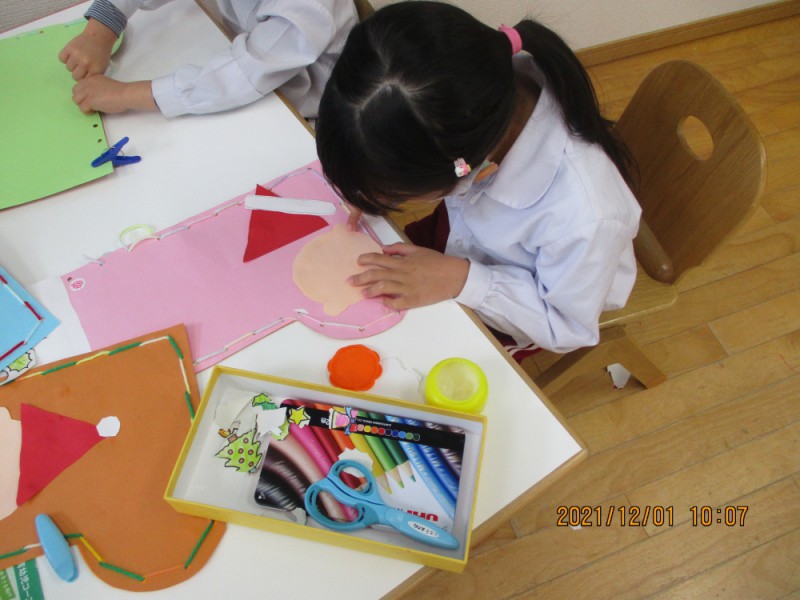 最近は、聖劇の練習に参加しながら、お部屋ではクリスマスに向けて、絵画、製作を頑張っています。