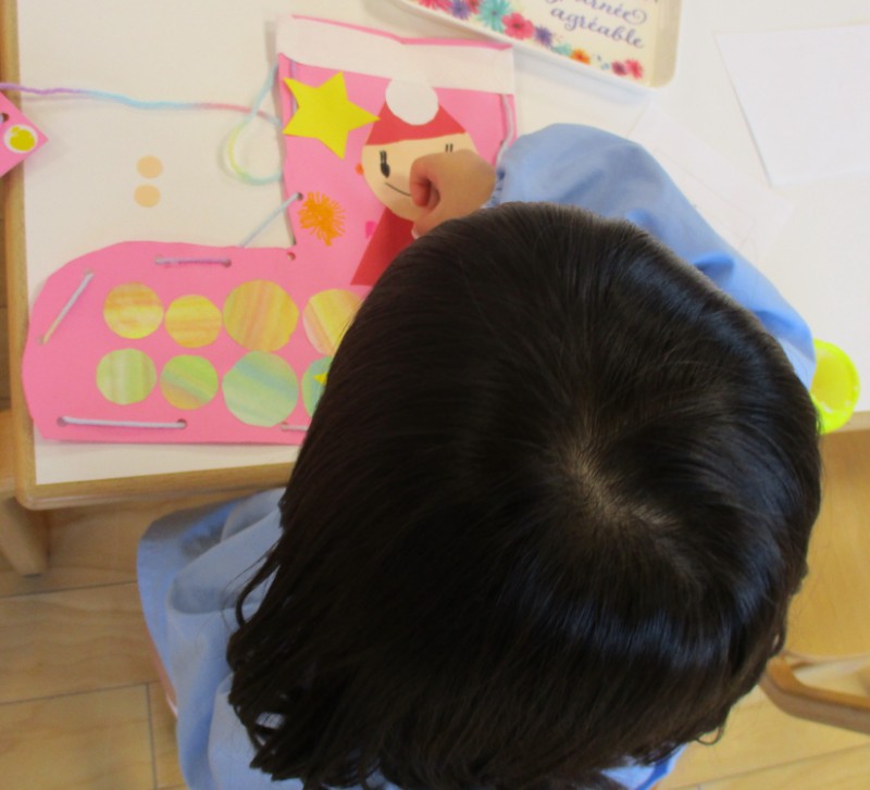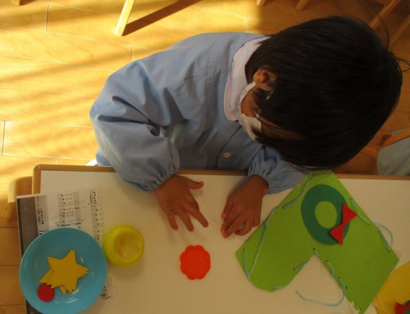 サンタブーツ制作ではプレゼントをサンタさんにもらえるのを楽しみに、一生懸命作っていました♪