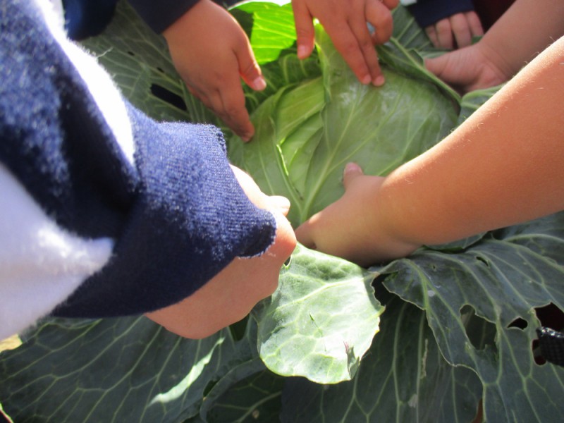 採れたキャベツは給食のお汁に入れていただき、美味しくいただきました!